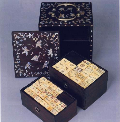 清末人们为了方便在船上游戏,干脆将骨牌的材质也借鉴过来,将纸牌的钱币图案绘制在骨牌上,并加入了「东、南、西、北」四风牌,把「千万、红花、白花」3 张特殊牌变成了「发财、红中、白板」。纸牌与骨牌的集大成者——「麻将」就此诞生。